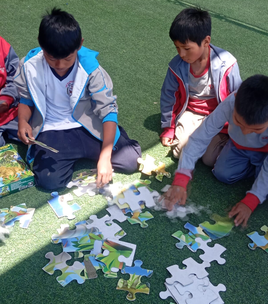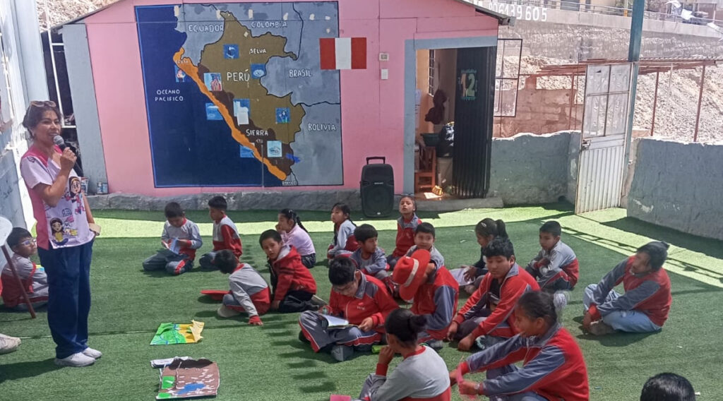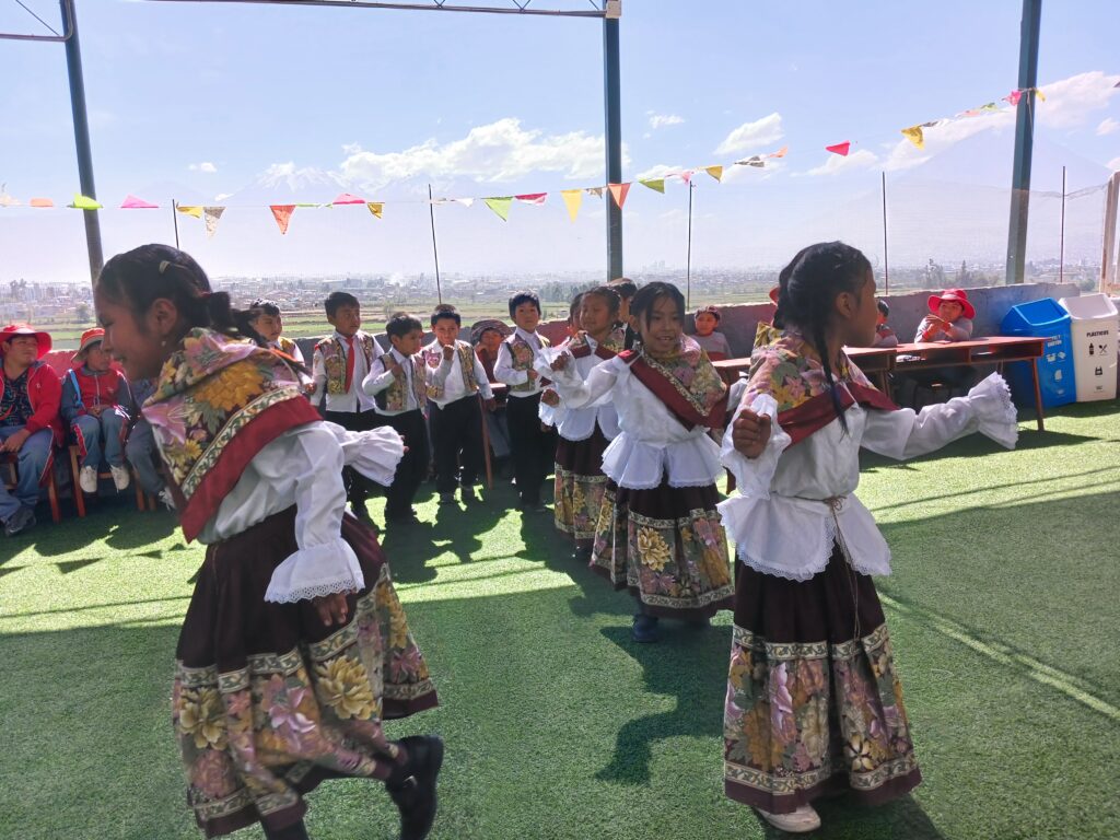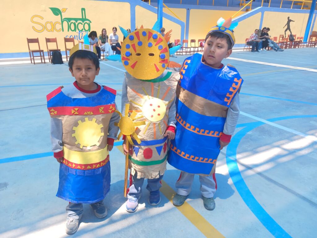 As part of the curriculum the students learn about the history of Perú and then act it out in front of the school. All the costumes were made by the students using old vegetable bags amongst other items.
