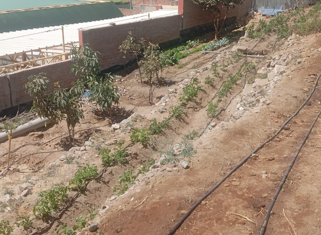 The final terrace of the vegetable garden was cleared of rocks and levelled out. Drip-irrigation was installed and vegetable seedlings were planted, including onion, beetroot, lettuce and cabbage.